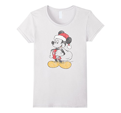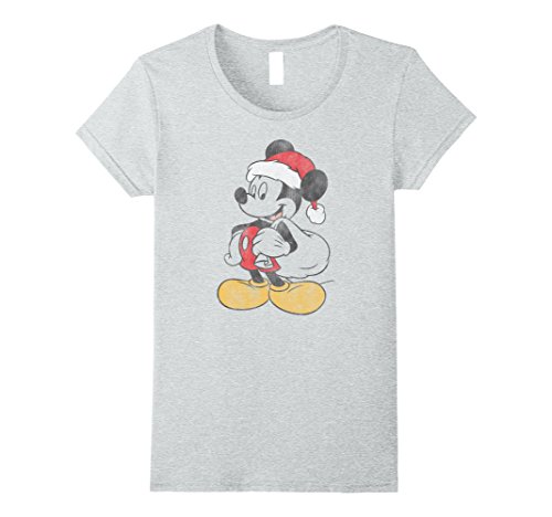 Womens Disney Mickey Mouse Santa Christmas T Shirt Small Heather Grey