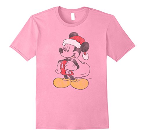 Mens Disney Mickey Mouse Santa Christmas T Shirt Large Pink