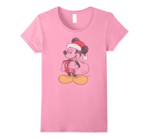 Womens Disney Mickey Mouse Santa Christmas T Shirt Small Pink