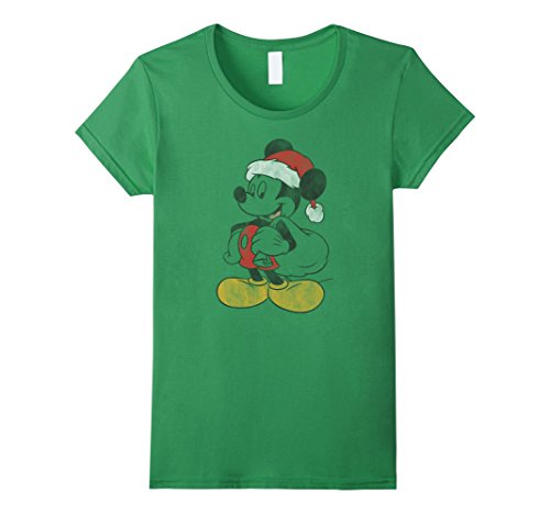 Womens Disney Mickey Mouse Santa Christmas T Shirt XL Grass