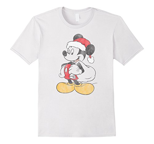 Mens Disney Mickey Mouse Santa Christmas T Shirt Medium White
