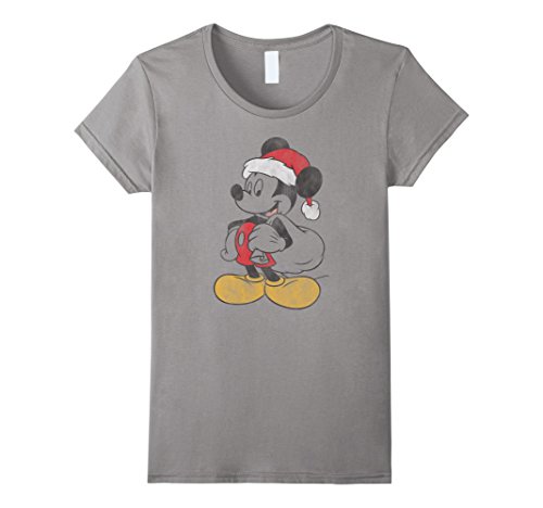 Womens Disney Mickey Mouse Santa Christmas T Shirt Small Slate