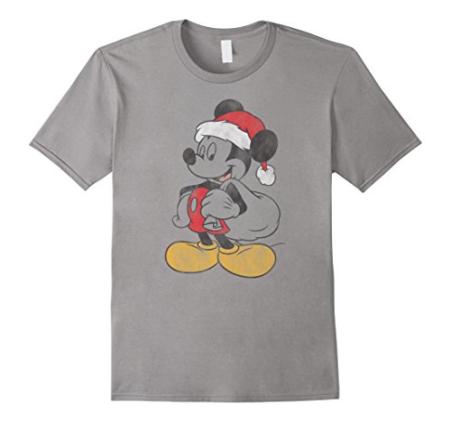 Mens Disney Mickey Mouse Santa Christmas T Shirt XL Slate