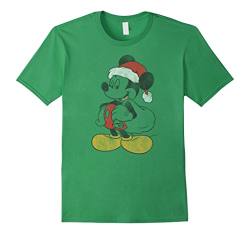 Mens Disney Mickey Mouse Santa Christmas T Shirt XL Grass