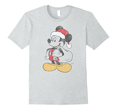 Mens Disney Mickey Mouse Santa Christmas T Shirt Small Heather Grey