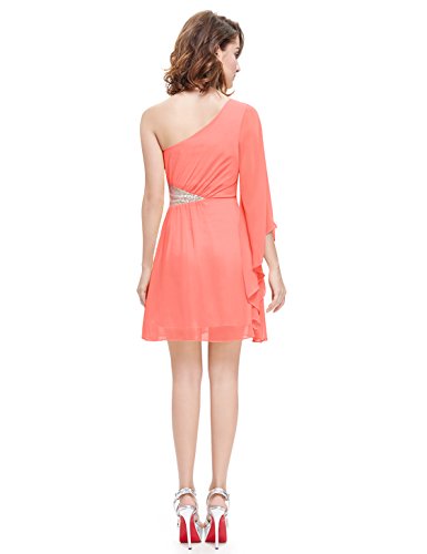 One shoulder short cocktail dress Padded enough for "no bra" option Unique sleeve style Non-removable sequins decorate the waist The sleeve length of size 8-18 are 32"-33",33"-34",33"-34",34",34"-35",34"-35"Feature