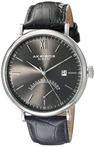 -. Title : Akribos XXIV Men's AK845SSB Retrograde Silver Tone Stainless Steel and Black Leather Strap Watch