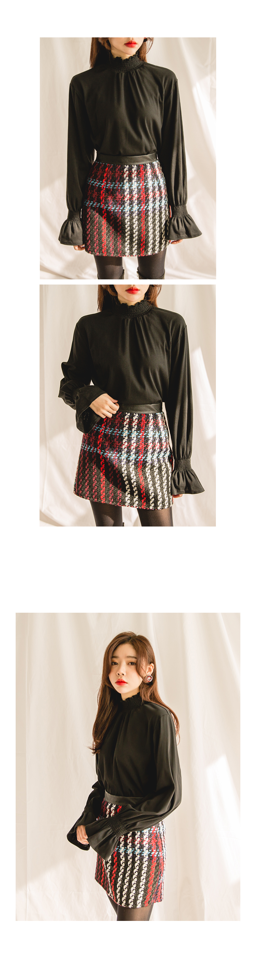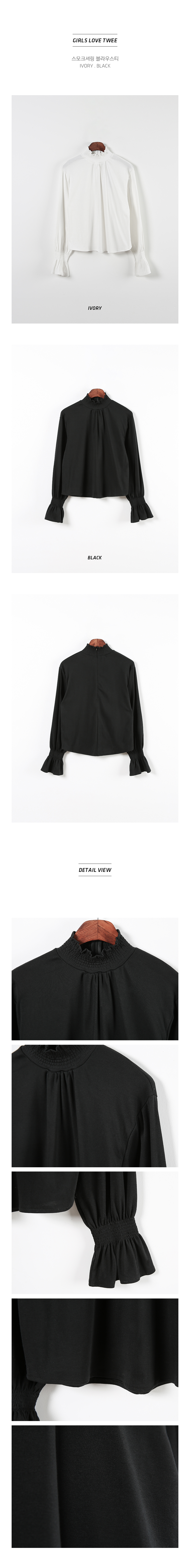 네크라인과 소매부분 스모크 밴딩으로