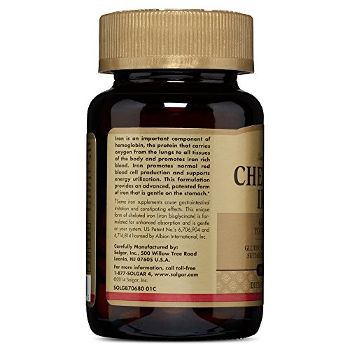 ReleaseDate : 2013-09-20 Studio : Solgar Publisher : Solgar Binding : Health and Beauty Product Description Iron is an important component of hemoglobin, the protein that carries oxygen from the lungs to all tissues of the body and promotes iron rich blood. Promotes normal red blood cell production and supports energy utilization. Provides an advanced, patented form of iron which is gentle on the stomach. Suitable for vegetarians. 0