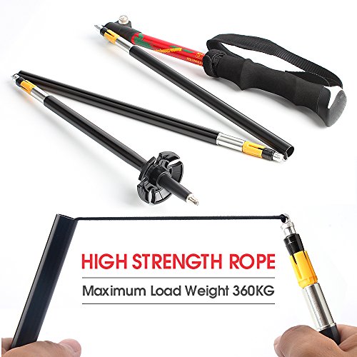 Specifications: Color: Purple Net weight:9.8oz/280g Folding Size: 14.5inch/37cm;Unfold Size: 47inch-53inch/120cm-135cm Handle material: EVA foam Shaft material: 7075 Aluminum Alloy Rod tip material: Tungsten Steel Lock catch type: Strong ABS Mental lock Hike farther with less effort! Using trekking poles provides a ton of benefits. 1. Help set and keep a consistent pace - Using trekking poles allows you to get into a rhythm and stay focused on maintaining a consistent pace. 2. Give you a boost on climbs - Going up steep climbs requires your legs to work extra hard, especially if you're also carrying a backpack. Using your trekking poles to boost yourself up with your arms helps keep your energy level up. 3. Take pressure off you knees on descents - Long descents can be hard on your knees and ankles. Trekking poles can be used to catch some of your weight with your arms, reducing the pounding that your knees and ankles have to endure. Trekking poles also aid with stability on steep sections or large drops. 4. Great for balance on challenging terrain - If you hike around challenging terrain like rivers, creeks, muddy areas, snow banks, etc., the extra points of contact can be the difference between getting through easily or taking a bad fall. 0