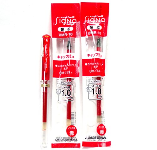 -. Title : Uni-Ball Signo Broad Point Gel Impact Pen Red Ink (UM153.15) + Refill (UMR10.15)×2 Packs/total 2 Refills Set (Japan Import) [Komainu-Dou Original Package]