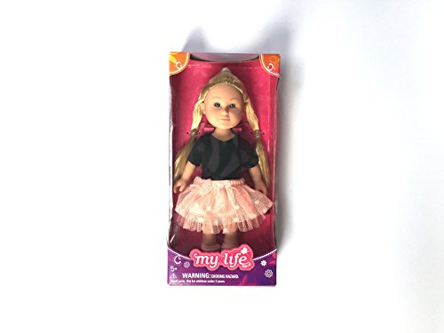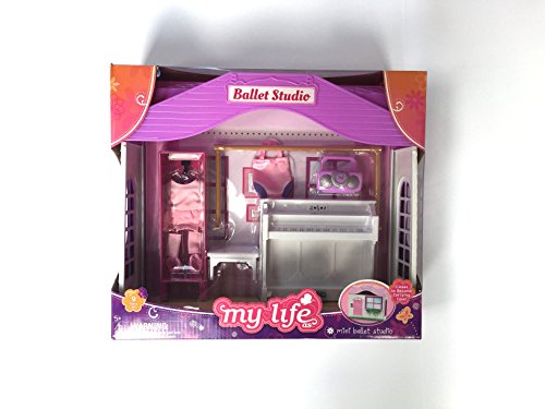This adorable set comes with the blonde 7" My Life As mini ballerina complete with pink tutu and leg warmers. It also comes with the mini ballet studio which features 9 pieces: 1 house, 1 ballet bar, 1 locker/cubby, 1 boom box, 1 piano, 1 piano bench, 1 ballet bag, 1 ballet outfit, and 1 hanger. You will enjoy hours of entertainment and play with this set.
