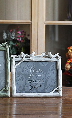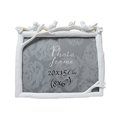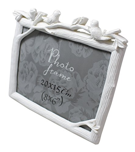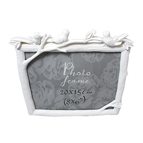 Cute 3 Birds Desktop Tabletop Countertop Horizontal Wooden Photo Picture Frame - 8 Inch White│Valentine's For Him/Her