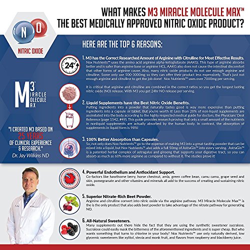 -> Nox Nutrients' Nitric oxide supplements are FDA approved and GMP compliant. M3 Miracle Molecule Max is medical doctor certified (MD-C) ™ and was reviewed for safety, effectiveness, properly dosed and pharmacokinetics.