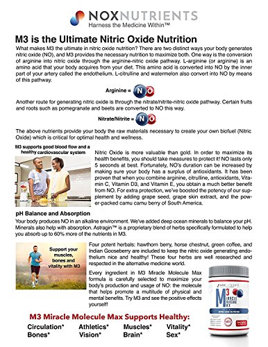 M3 Miracle Molecule Max Nitric Oxide Supplement - Ultimate Nitric Oxide Powder for Circulation, Vision, Sex, Muscles, Vitality, Brain and Bone Health
