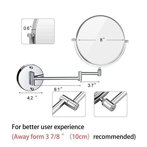 DOWRY 10x Magnification Wall Mount Makeup Mirror, 8 Inch Double-Sided Swivel, 12 Inch Extension, Polished Chrome Finished M1309-10