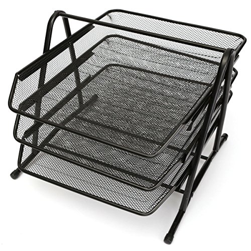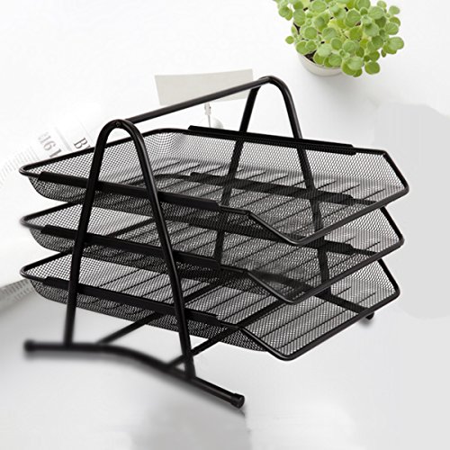 -. Title : Caveen 3 Tiers Black Mesh Filling Front Load Letter Paper Storage Tray Organizer Home Office Use