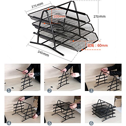 -. Feature : STURDY AND FUNCTIONAL - Steel mesh construction with durable powder coat finish. Well made, sturdy, heavy duty and bomb proof / SPACIOUS A4 SIZE - It will fit A4 sized folders, papers, files, and other letter sized paper products / SLIDABLE TRAYS - Sliding out for access.The trays are easy to push forward and back. Convenient to put papers in and take them out / KEEP YOUR DESK NEAT - Easy to assemble and save your space. Won't take up much counter space and is fairly unobtrusive. Keep your desk well organized and clutter-free / Suitable for office, home and school. Keep one and you will experience the surP.R.Ise that the metal mesh organizer has