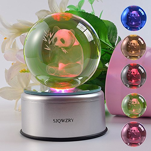 -. Title : 3D Crystal Ball LED Night Light Lamp Lighting With Rotating base Flashing Colored (Panda)