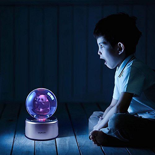 -. Feature : A.Each Crystal ball is made of a high grade k9 crystal the same material used in high end home decor / B.3D vision effect, especially in the dark or take a photograph, the vision thrill will be strong / C.Each Crystal ball has a rotating base and 7 colors led light Adapter and USB cable included / D.grade switch at the base, to the left, base can rotating with light flashing, to the middle, close light and stop rotate, to the right, stop rotate, but the lights can flashingend home decor. / E.It Can be a luxury gift for kids and be used as night light for kids. Great Christmas gifts, birthday gifts, great choices for the fans.