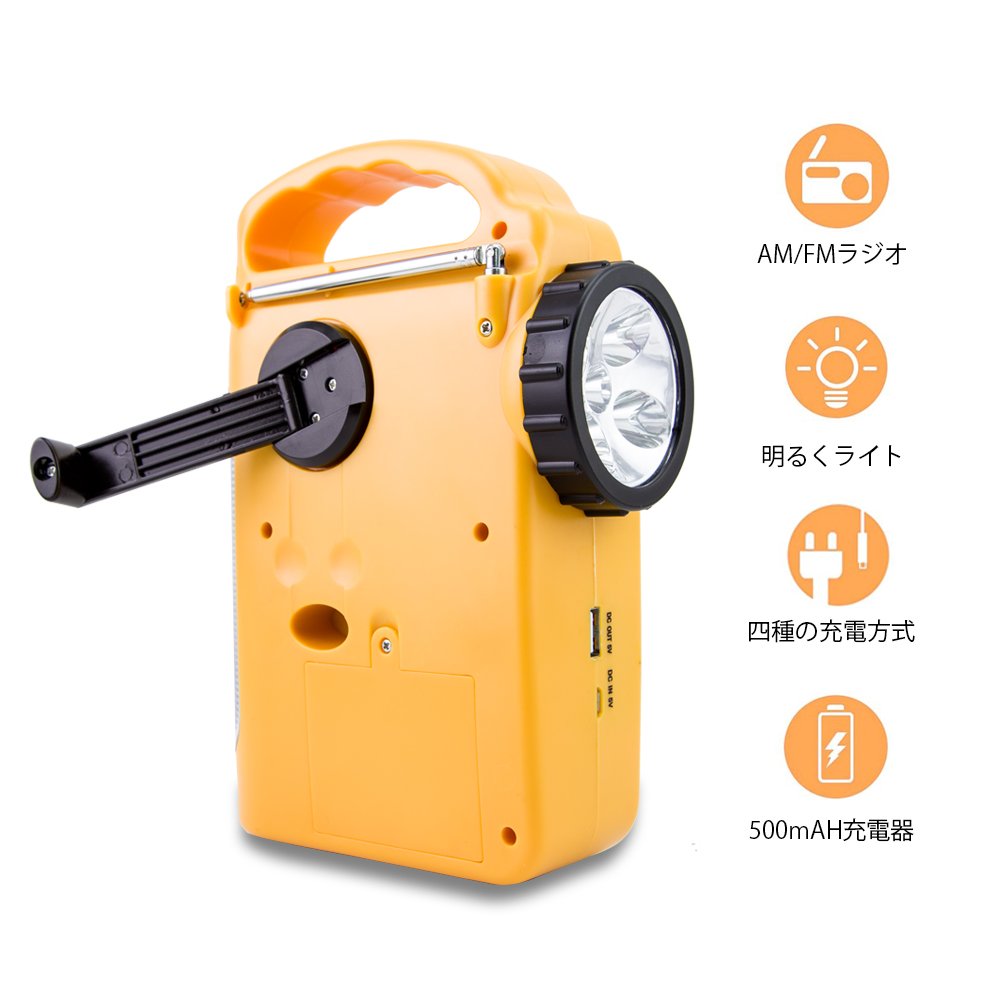 ★ Hand-cranked charge: It can be used with batteries, hand-cranked charging is also possible, it is useful in emergency.