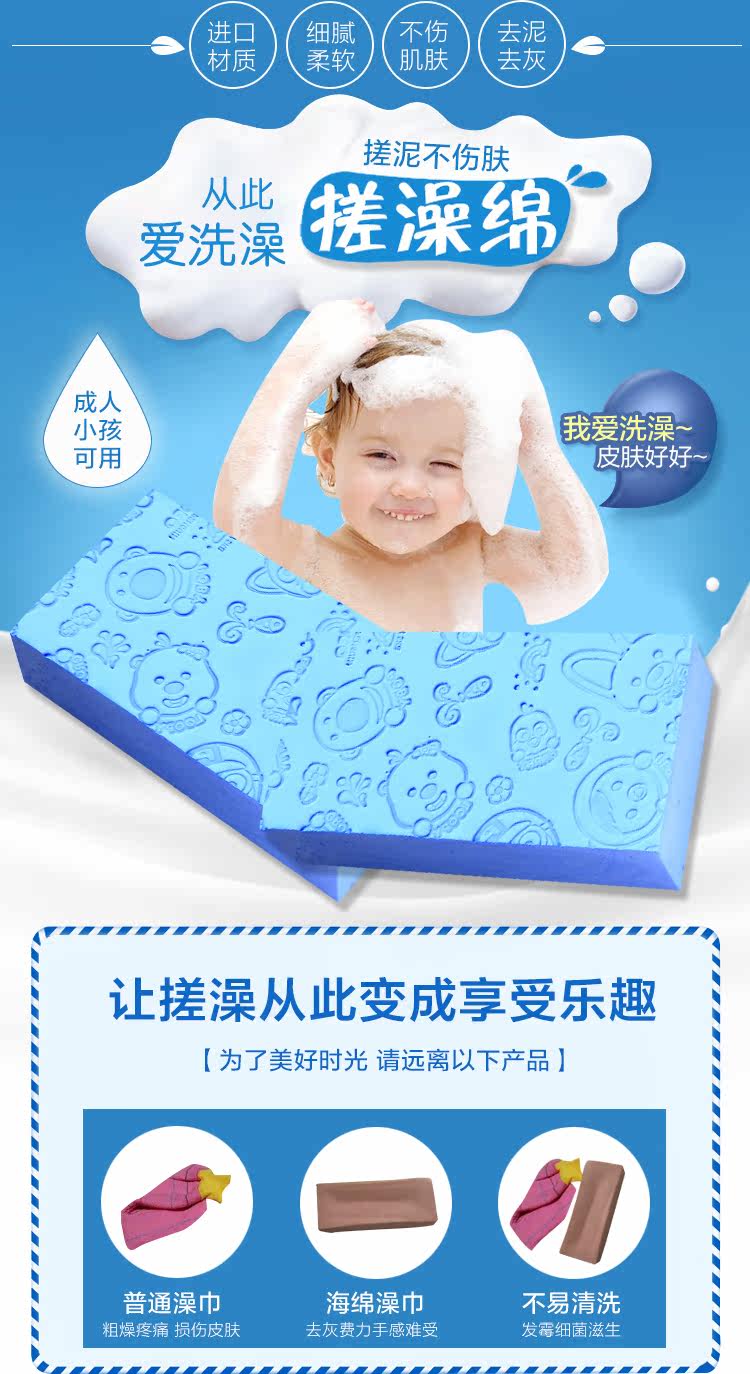 搓澡海绵 宝宝卡通搓澡巾强力搓泥 儿童成人洗澡搓背巾