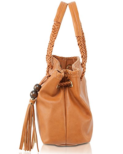 -. Brand : Big Buddha -. Department : womens -. Feature : Top Magnetic snap closure, Double Handles 7 drop / Whip Stitch Detail With Hanging Charm Tassel / Interior features Center zip compartment / Interior Back wall zip pocket and two slip pockets / Bag: 14" x 10" x 5" (WxHxD) Handle Drop 7" -. Model : BMO09615 -. ProductGroup : Shoes -. ProductTypeName : HANDBAG -. Size : One Size -. Title : Big Buddha Dylan Satchel Shoulder Tote Bag The Dylan Satchel from Big Buddha is a fashionable tote with a feminine structure and boho detailing for trend-setting style. Whip Stitch Detail, Dual handles with hanging tassel charm. Top snap closure secures items inside the fully lined interior, featuring a center zip compartment, zipper pocket and two slip pockets for accessories.