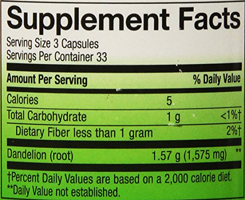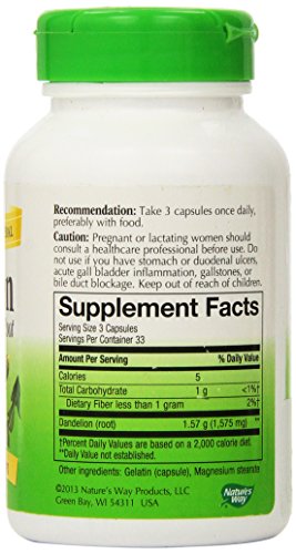 -. Binding : Health and Beauty -. Brand : Nature's Way -. Feature : 180 Capsules / Health & longevity through the healing power of nature -. Label : NATURE'S WAY -. Manufacturer : NATURE'S WAY -. MPN : 12300 -. PackageQuantity : 100 -. PartNumber : 12300 -. ProductGroup : Health and Beauty -. ProductTypeName : HEALTH_PERSONAL_CARE -. Publisher : NATURE'S WAY -. Studio : NATURE'S WAY -. Title : Nature's Way Dandelion Root 100 Capsules