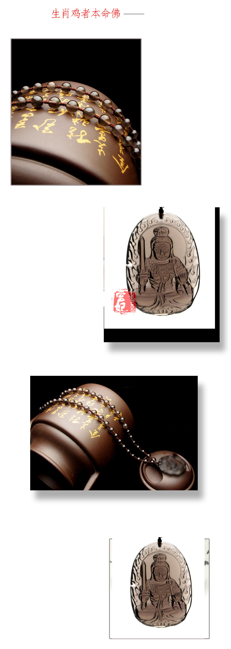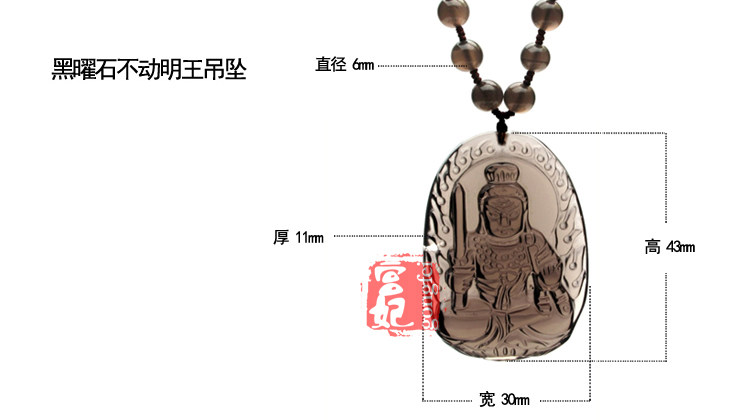 开光 天然冰种黑曜石不动尊菩萨吊坠 生肖鸡守护神吊坠
