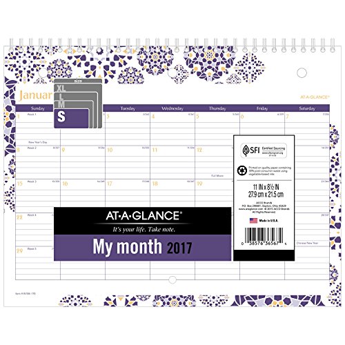 -. Binding : Office Product -. Brand : At-A-Glance -. EAN : 0038576365674 -. Feature : Purple and orange Abby design borders each page of this monthly wall calendar. Calendar covers 12 months from January - December with Julian dates for a full year of big picture planning. / One month per page layout features ruled daily blocks for each day to keep handwriting neatly aligned / Each daily block measures 1 ½" x 1 1/8" to provide plenty of space to record multiple notes each day -. Label : ACCO Brands -. Manufacturer : ACCO Brands -. Model : W184-170-17 -. MPN : W184-170-17 -. NumberOfItems : 1 -. PackageQuantity : 1 -. PartNumber : W184-170-17 -. ProductGroup : Office Product -. ProductTypeName : OFFICE_PRODUCTS -. Publisher : ACCO Brands -. Studio : ACCO Brands -. Title : AT-A-GLANCE Wall Calendar 2017, Monthly, 11 x 8-1/2", Mini, Wirebound (W1840) -. UPC : 038576365674