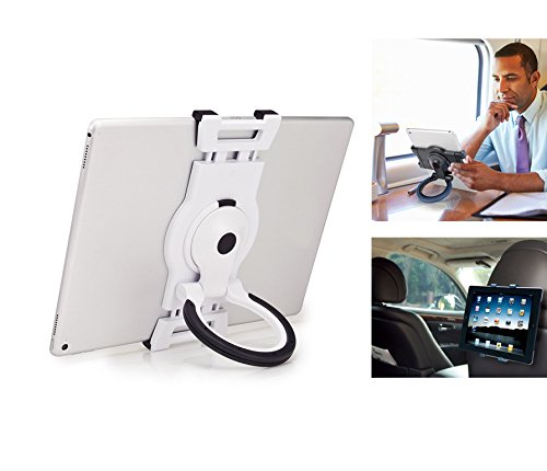 MAX SMART Universal Car Headrest / Home / Office / Kitchen Tablet Stand Holder, Adjustable Multi-Angles / 360° Rotating / Ergonomic for 7.9"-13" tablet, e-reader, phone and iPads, White