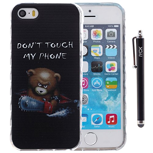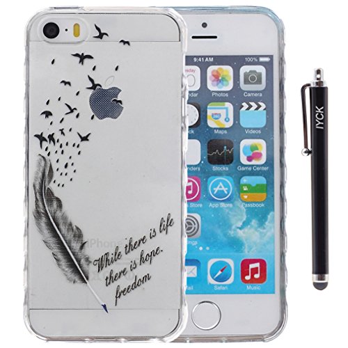 [Description] Compatible with Apple iPhone SE/5/5S_ Made of Flexible_ Elastic_ Durable_ Shock absorbing and shatterproof premium TPU_ with Urethane Coating to prevent yellowing Super-slim design and perfect fit that adds minimal bulk to your smart phone_ shows the perfect shape of your device Constructed from smooth_ treated rubber that resists dirt and stains. Anti-slip properties gives your smart phone more grip Precisely cut openings to allow full access to all the functions of your phone Packaging with iYCK logo on it_ including 1 * iPhone SE/5/5S Case and 1 * free black stylus pen as a gift