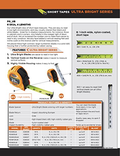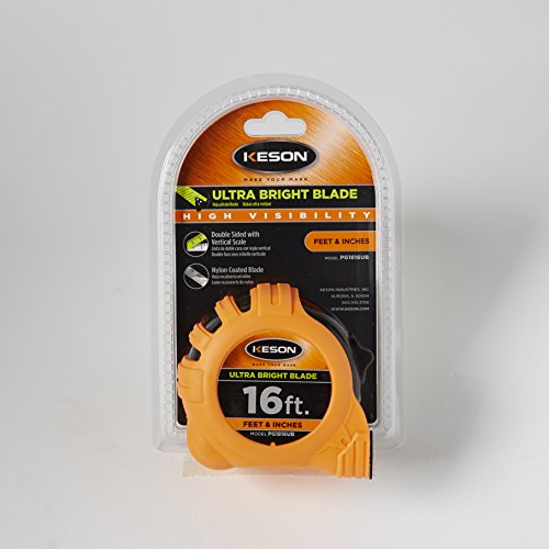 Keson PG1816UB Nylon Coated Ultra Bright Steel Blade Short Tape, 16' Length