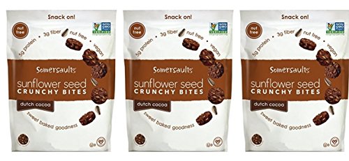 Somersaults Nut Free 100% Natural Sunflower Seed Snacks Dutch Cocoa Crunchy Nuggets - Pack of 3, 6 Oz. Ea.