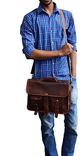 -. Title : Jaald Mens Genuine Leather Large Laptop Bag Messanger Bag for Upto 14" Laptop bag for Macbook