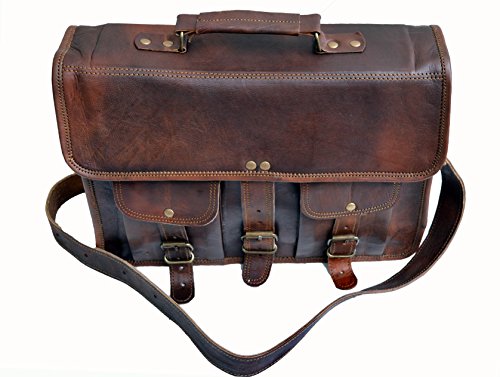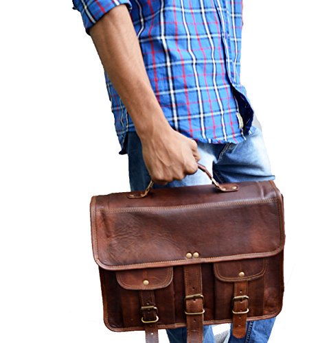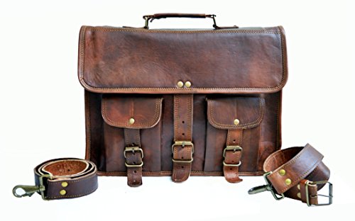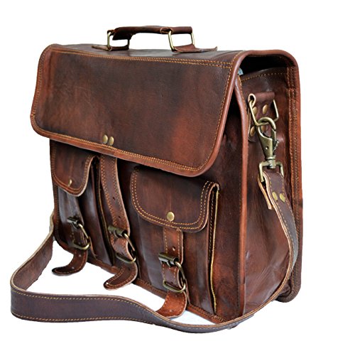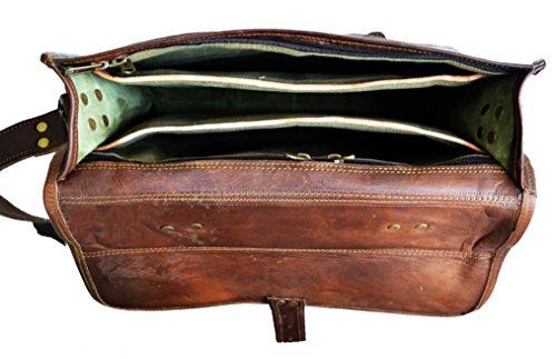 -. Feature : Dimensions : 10 X14 X 4 inches (height, width, depth) . Delivery Via DHL even on standard shipping. / 100% light weight goat leather bag. Ideal for 13 / has brass polished buckles . 100% rustproof. Detachable & Adjustable shoulder strap , for best fitting for people of all sizes. / Two external front pockets for keeping misc. things. Has a sturdy canvas inner lining for real long life. Handle on top for it can be used as a briefcase. Has three partition inside for easy separation of things. / The bag is made with genuine buck leather that gets darker with usage hence color may vary initially but will be even with usage.