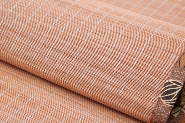 孟宗竹の表面付近の目がぎっしり詰まった部分のみを使用しました。表面部分は汚れにくく、耐久性に優れ、熱伝導率が高いため、ひんやり感も抜群です。1.4mmの細ヒゴを使用しています。竹を細ヒゴにする事で硬いイメージのある竹がやわらかく、しなやかになります。裏には不織布を貼っていますので、フローリングでのご使用に適しています。竹は他の木材と比べると、格段に成長が早く(3~5年で成竹)、持続的生産が可能な環境に優しいサスティナブルな素材です。