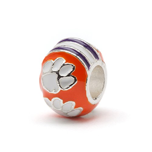 Go Tigers! This bead charm will make the perfect gift for any Clemson university fan, student or alumni. One orange round charm with five white paws surrounding and the Clemson Tigers Helmet Stripe. Fits most charm bracelets or can be worn on a necklace. Officially licensed. Lifetime guarantee.