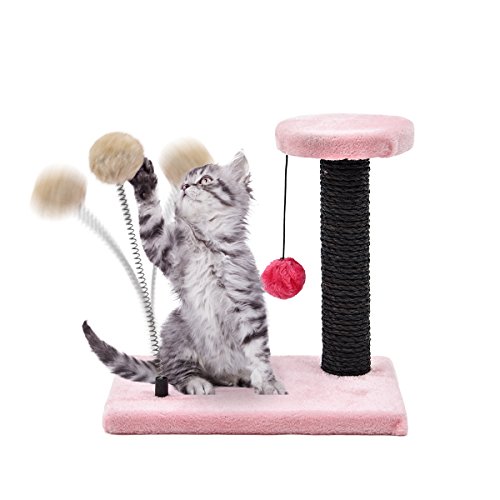 (Pawz Road)/Pet Supplies/Training Behavior Aids/DIRECT FROM USA/PAWZ Road Cat Scratching Post Kitty Scratch Natural Sisal with Plush Cover and Toys( Spring Bal...