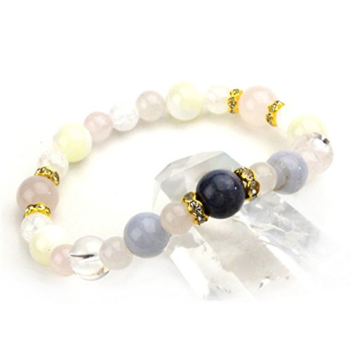 ◆9월 탄생석의 사파이어를 주요하석에 색취 훌륭한 천연석 파워 스톤에디자인된 콤비네이션 팔찌입니다. 블루나 핑크의 컬러풀한 색조와 크랙 쿼츠의 키라《메키》가 멋지게 융합한 패셔너블 파워 스톤 팔찌입니다.