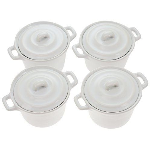 4 RAMEKIN MINI CASSEROLE DISH SET W/ LID WHITE 4OZ OVEN SAFE CERAMIC BAKING PAN