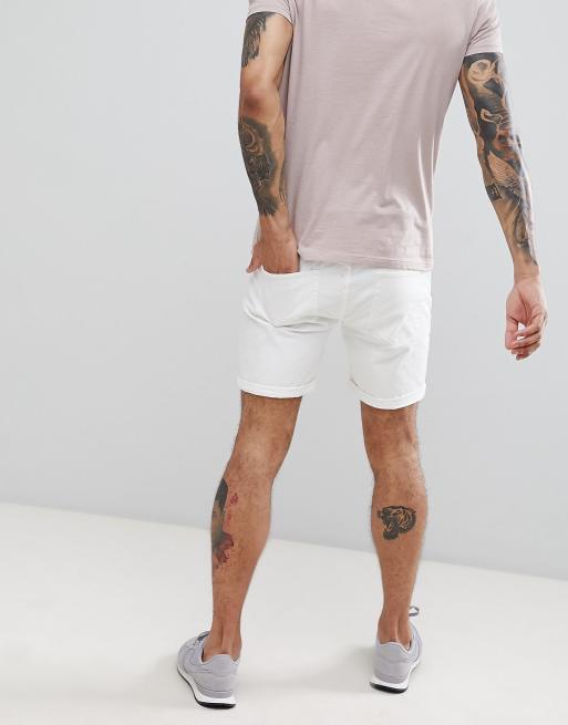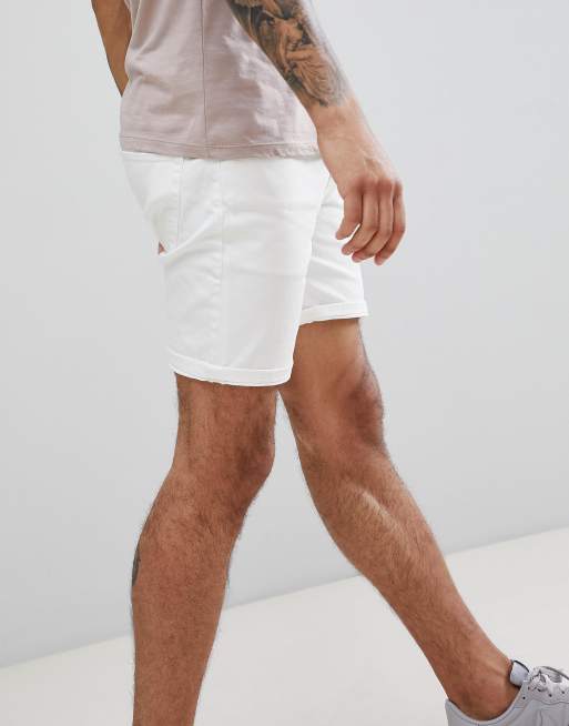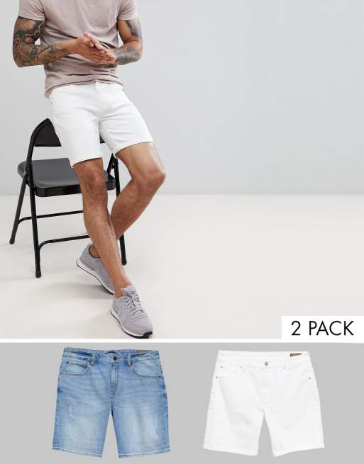 ASOS DESIGN Denim Shorts In Skinny White & Light Wash With Abrasions