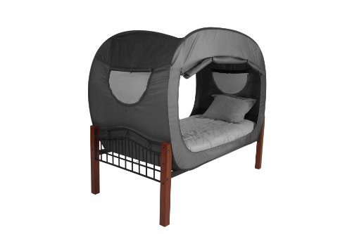 Studio : Privacy Pop Publisher : Privacy Pop Product Description PP-BLACK-TWIN Size: Twin Features: -Designed to allow for simple and fast set up and take down.-Innovative style that fits most common full beds.-Mesh and zip window sides offer ventilation for easy breathing and light when you need it.-Double-sided zippers for ease of use.-Transport without bulk with its innovative folding design and compact carrying bag.-Electronic port opening to access cell phone or laptop cords.-Water repellent material. Dimensions: -Full: 53' H x 55' W x 78' D, 6 - 9 lbs.-Twin: 47' H x 39' W x 78' D, 6 - 9 lbs.-Twin Bunk: 31' H x 39' W x 78' D, 6 - 9 lbs.-Twin Extra Long: 47' H x 39' W x 80' D, 6 - 9 lbs.-Full Bunk: 39' H x 55' W x 78' D, 6 - 9 lbs. 0