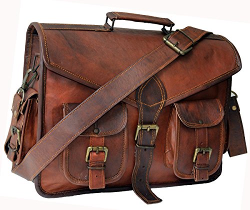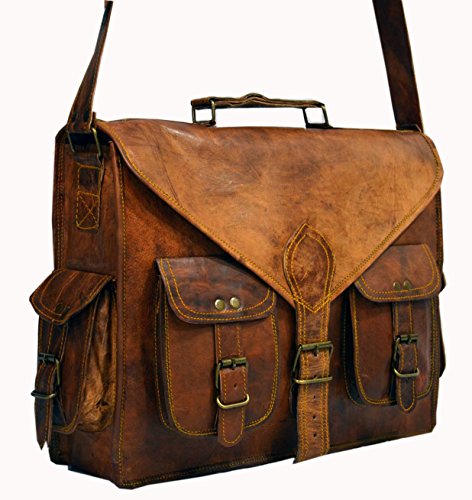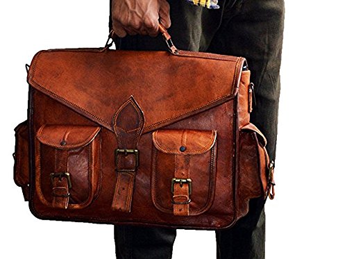 Studio : HLC Publisher : HLC Binding : Electronics Product Description Unisex leather laptop bag messenger bag satchel in dark brown. This original handmade leather messenger bag or leather laptop bag is created by finest indian artisans with all the attention to detailing.the messenger bag is made of genuine leather. you will receive exactly same bag as shown no foul smell as it comes in other goat leather bag. All genuine vegetable tanned goat leather is 3-4 oz, processed to withstand almost any condition. Features include; variety of inside and outside pockets for convenience, adjustable shoulder strap, and a strong resistant Canvas. The leather is not processed by any chemicals or dyes. Natural vegetable oil is used on the bags to pick up texture when it is left out in the sun for sun tanning. The bag/leather will get soft and will pick up more texture with the age of the bag. Bag gives a wonderfully unique and antique look with use. A perfect companion and gift for your close ones. 0