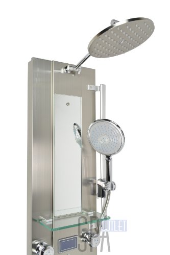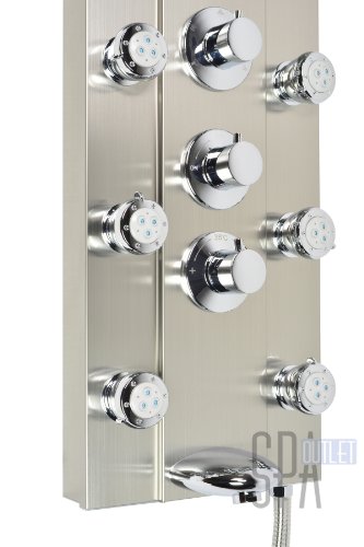 Blue Ocean 52” Stainless Steel SPV962332 Thermostatic Shower Panel with Rainfall Shower Head, 8 Adjustable Nozzles, and Tub Spout