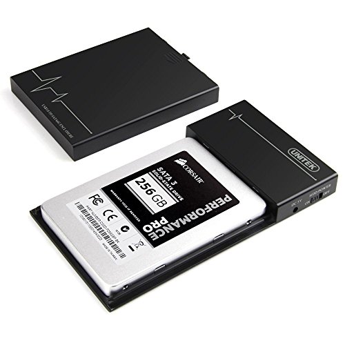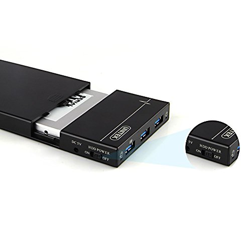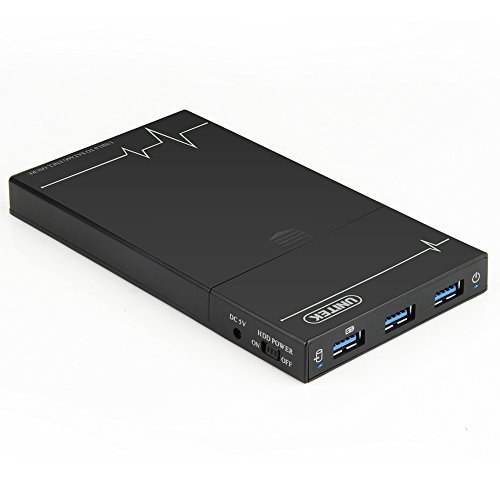UNITEK Multi-in-1 2.5 Inch SATA to USB 3.0 Tool-free External Hard Drive Disk Enclosure Case, with BC 1.2 Charging Hub 5V2A Power Adapter, Optimized for 9.5mm 7mm 2.5'' SATA III HDD SSD, Black