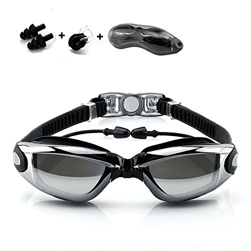 -. Feature : Fashion Swimming Goggles constructed with durable, hypoallergenic silicone gaskets. Soft, flexible silicone frame provides maximum comfort. Gasket rests snugly and securely in the eye socket.Swimming Goggles with Protective Case Nose Clip and Ear Plugs are suitable for adult men women of different ages. / Swimming goggles silicone gaskets for men and women are soft and generously sized to fit very comfortably on most face shapes with low impact on the eyes and guaranteed not to leak, Traing googles provides a sleek, snug, low profile inner eye fit. / Tested by professional swimmers and instructors, Our functional Swimming Googles is made of high density, optical grade PVC that will resist normal use impacts, give you crystal clear vision, and fully protect your eyes, skin. You will be very satisfied with the comfortable Swimming goggles. / Men Swimming goggles with Improved two color silicone double headstrap with ergonomic adjustable clip,improved interchangeable nose pieces,UV protection, anti-fog lenses, and 100% PVC free making it ,high quality Women Swimming Google ensure you long term using. / wim Glasses Watertight Anti Fog UV Protection, Shatter resistant, polycarbonate Clear lenses. Filter and expanded side view allow great visibility. So that you can easily observe when swimming and avoid collision with other people.