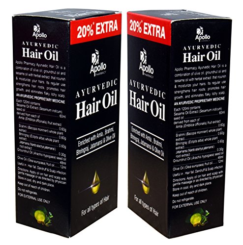 -. Title : Ayurvedic Hair Oil Treatment - ★ Keeps the Hair Cool(helps in Growth) - ★ Prevents Premature Hair Fall - ★ Promotes Hair Growth - ★ Eliminates Flaky Itchy Scalp - ★ Stops Dandruff - ★ ALL Natural - Amla, Brahmi, Bhringraj, Jatamansi & Olive Oil - Pack of 2 X 4 Oz - Apollo Pharmacy
