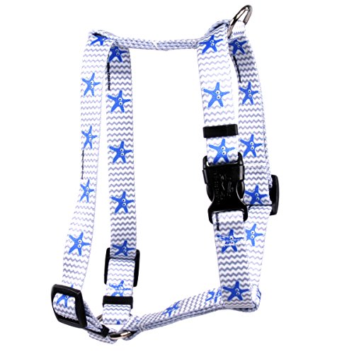 Studio : Yellow Dog Design Publisher : Yellow Dog Design Binding : Misc. Product Description This is the Starfish Baby Roman Style "H" Dog Harness - Size Large - 1 Inch Wide and fits Chest Circumference of 20 to 28 inches from Yellow Dog Design, the roman, or "H", harness is perfect for dogs with necks that are larger than their head or dogs that pull. Made right here in the USA and provides more control without a choking effect. SIZING: This dog harness utilizes a quick clasp closure, also called a side release clasp. Sizing is given as a range of chest widths. Measure your dog around the widest part of its chest, usually just behind the front legs. If you are shopping for designer, affordable dog accessories, then look no further. These durable, guaranteed to last dog products have no rough edges, no threads to fray or break, no problem going in the wash, and no stress getting them on or off your dogs. 0