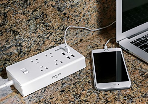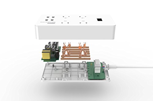 SAFE & RELIABLE: Top Notch Fire Resistant PC Material, FCC, RoHS Certified, 100% copper wire with overload protection up to 1,700 Joule. Rubber grips on the bottom hold the main unit in place, avoiding any slippery damages.